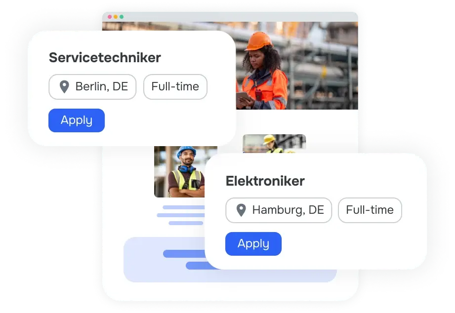 Mit den KI-gesteuerten Rekrutierungslösungen von Jobilla können Sie schnell Top-Talente für das Baugewerbe gewinnen, bewerten und einstellen und so bessere Ergebnisse erzielen als mit herkömmlichen Einstellungsmethoden.